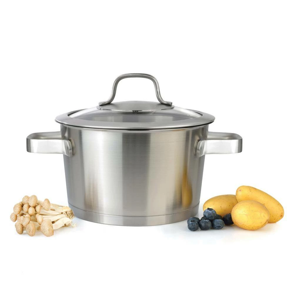 High-quality 18/10 stainless steel for extra durability and hygiene. Monitor the contents inside thanks to the glass cover. No need to lift the cover and waste valuable energy and loss of flavor. The base is designed for energy-efficient cooking and even heat transfer throughout the complete surface. The ergonomically shaped handle offers comfortable lifting and a safe grip.