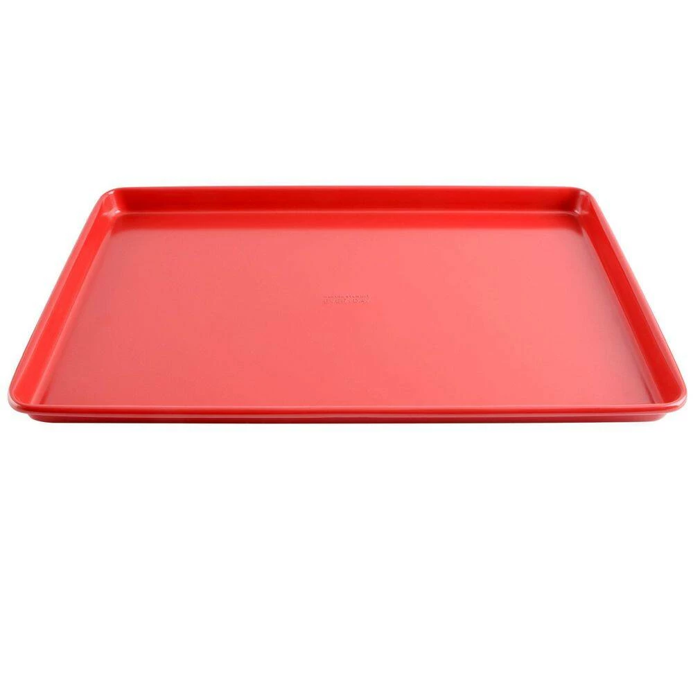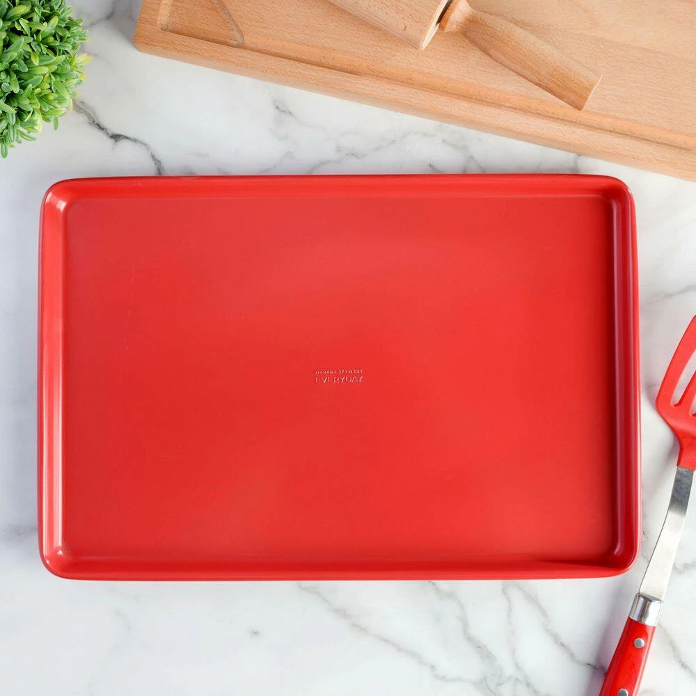 This MARTHA STEWART Everyday 17 in. nonstick cookie sheet is the perfect go to bakeware sheet to make your favorite cookies, roasted veggies, pastries and more. Constructed with durable carbon steel that has a nonstick coating for easy release and quick clean up. Large 17 in. size is perfect for baking large cookies or big batches for spacial occasions or just your every day treats. This colorful piece will be a welcome addition to your kitchen bake-ware collection.