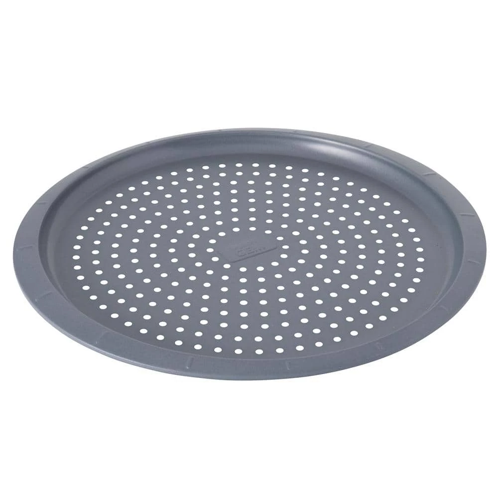 Easily cook up a delicious homemade pizza with the help of this perforated pizza pan. The carbon steel provides an even heat distribution for a consistent bake while the perforations help to produce that perfectly crisp finish. Once your pizza is done, you can easily make even slices with the help of the integrated grid lines on the pans edge. Inside dimension: 12.5 in. x 12.5 in. x 0.5 in.