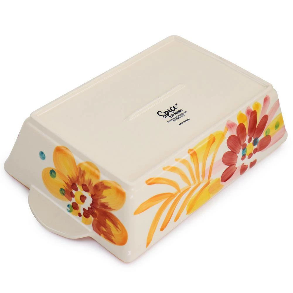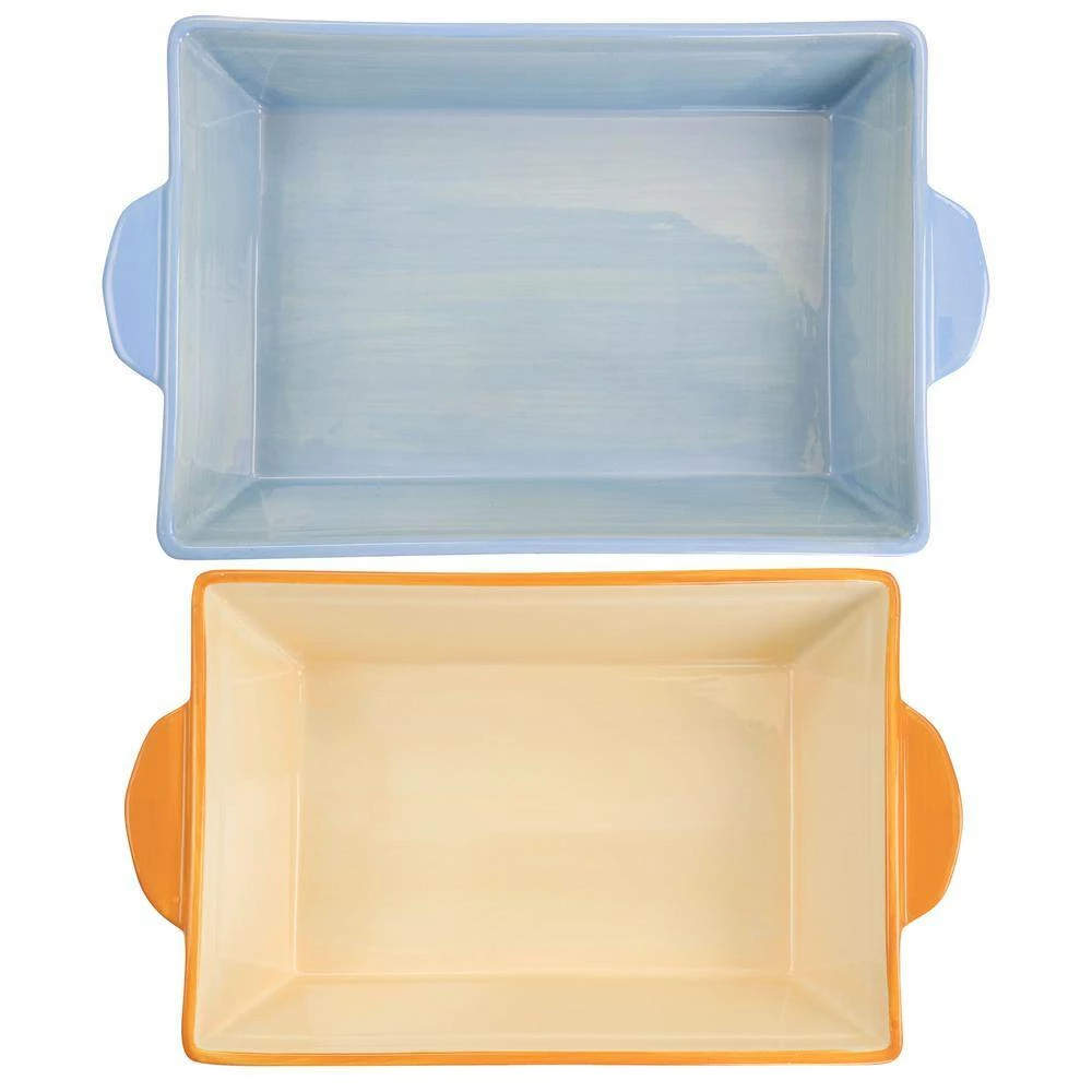 Up your oven-to-table game with the Spice by Tia Mowry Goji Blossom 2-Piece Bakeware Set. These colorful bakers are a great way to serve up all of your favas, sweet or savory. Crafted from stoneware, they heat evenly to promote proper browning. They are adorned with vibrant watercolor floral designs and feature wide handles for easy transport. The perfect choice for beautiful baked recipes.