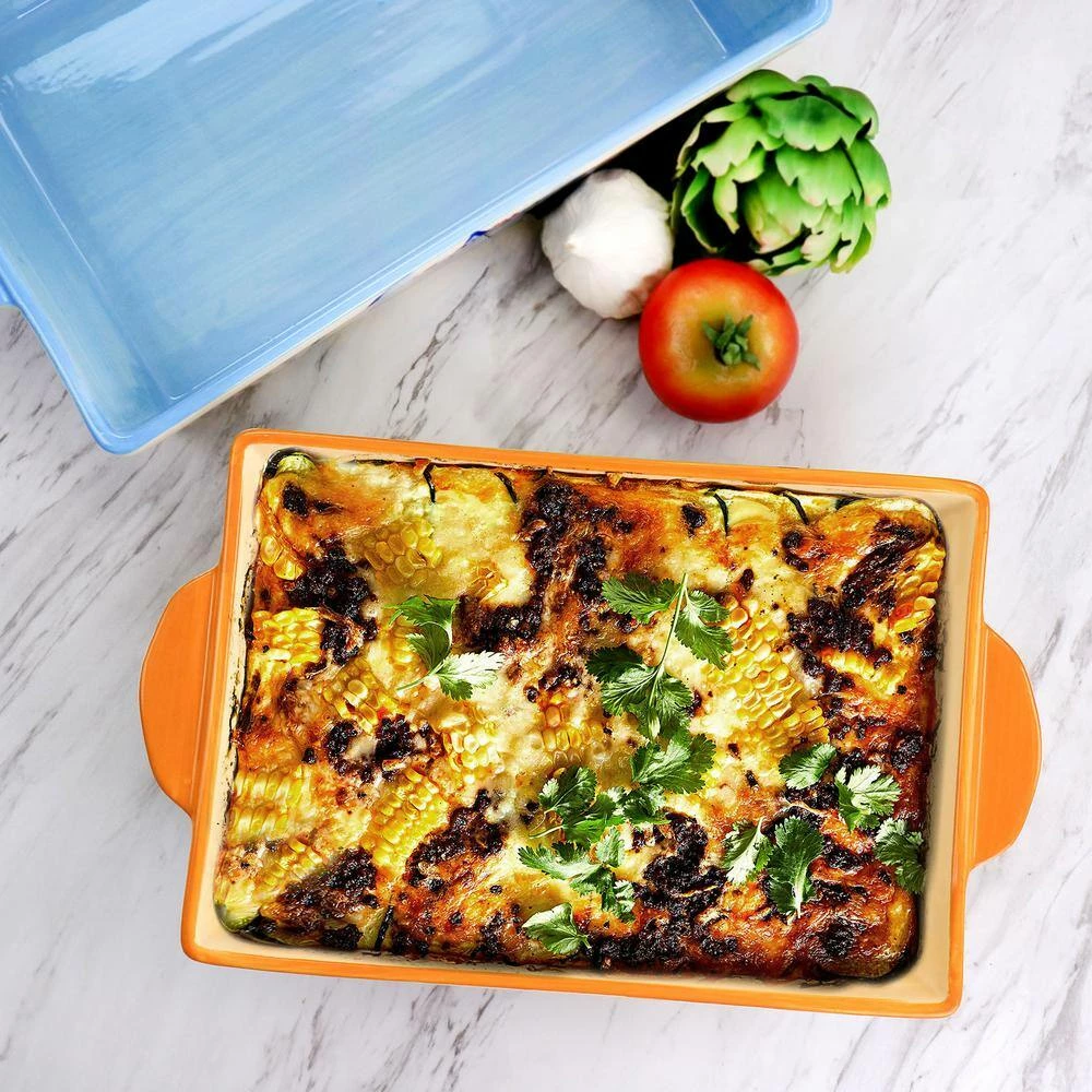 - 3qt baker-13.6 in. L with handles, 11 in. L, 7.9 in. W, 3.25 in. H, 4.25 lb. Weight