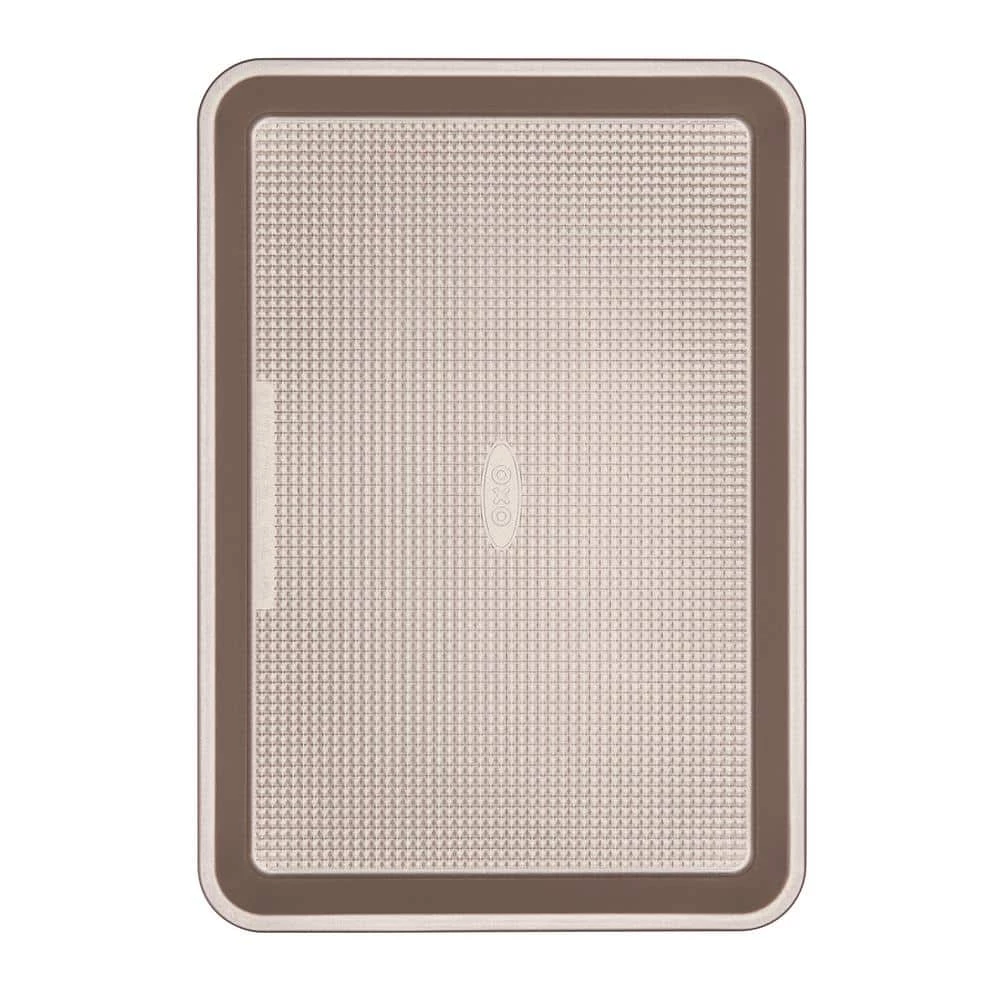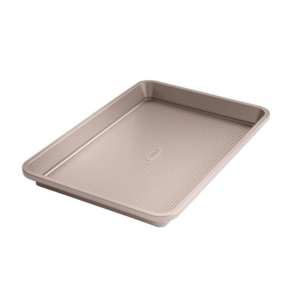 Commercial-grade bakeware for a lifetime of baking adventures The Non-Stick Pro Quarter Sheet Pan is perfect for large batches of cookies and sheet cakes, staying rigid so your treats stay aboard. The OXO Good Grips Non-Stick Pro bakeware line is designed to bring to your kitchen the best-in-class quality and performance found in commercial bakeware.