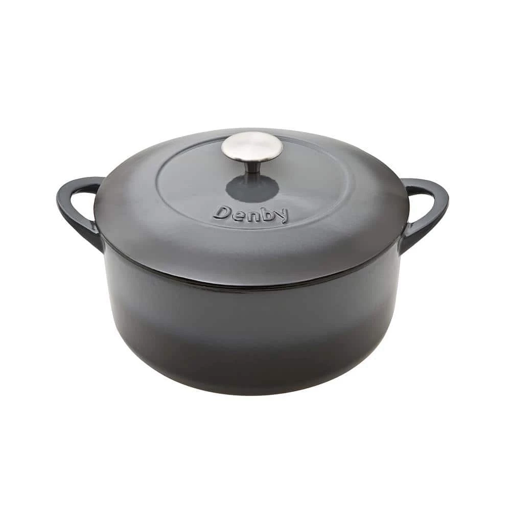 Saute veggies, make sauces, or prepare a variety of soups with the versatile Denby Halo Cast Iron 5.2-Liter Round Casserole. The traditional design complements any kitchen decor style. The durable cast iron construction helps keep food warm for a longer time. It features an enamel coating both inside and out for worry-free cleaning. Highly functional, this casserole from Denby makes for an ideal addition to your existing kitchenware.