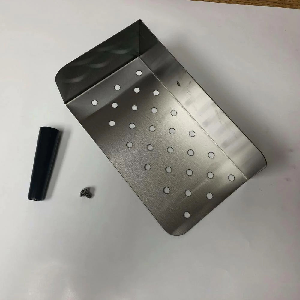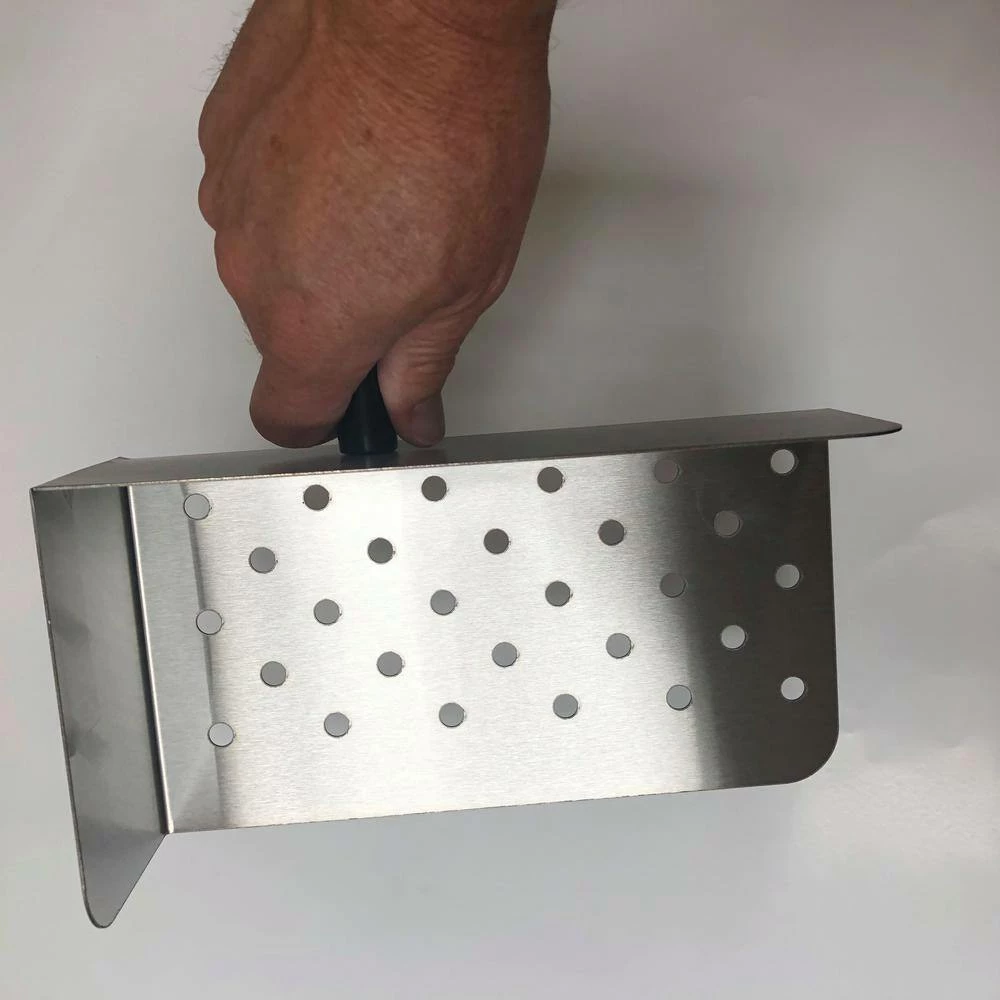 Professional nacho scoop made of stainless steel body and a easy to grip plastic handle. The scoop is a fast way to scoop nachos. Easy to assemble handle allows usage for left or right-handed operators.
