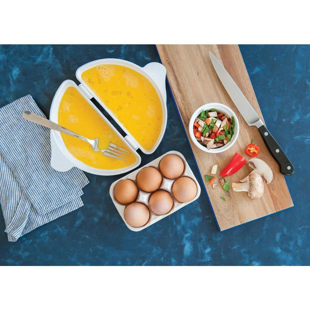 Forget having cereal for breakfast. This pan cooks perfect omelets of two, three, or four eggs in just minutes. With your microwave add you favorite toppings too perfect for any kitchen setting.