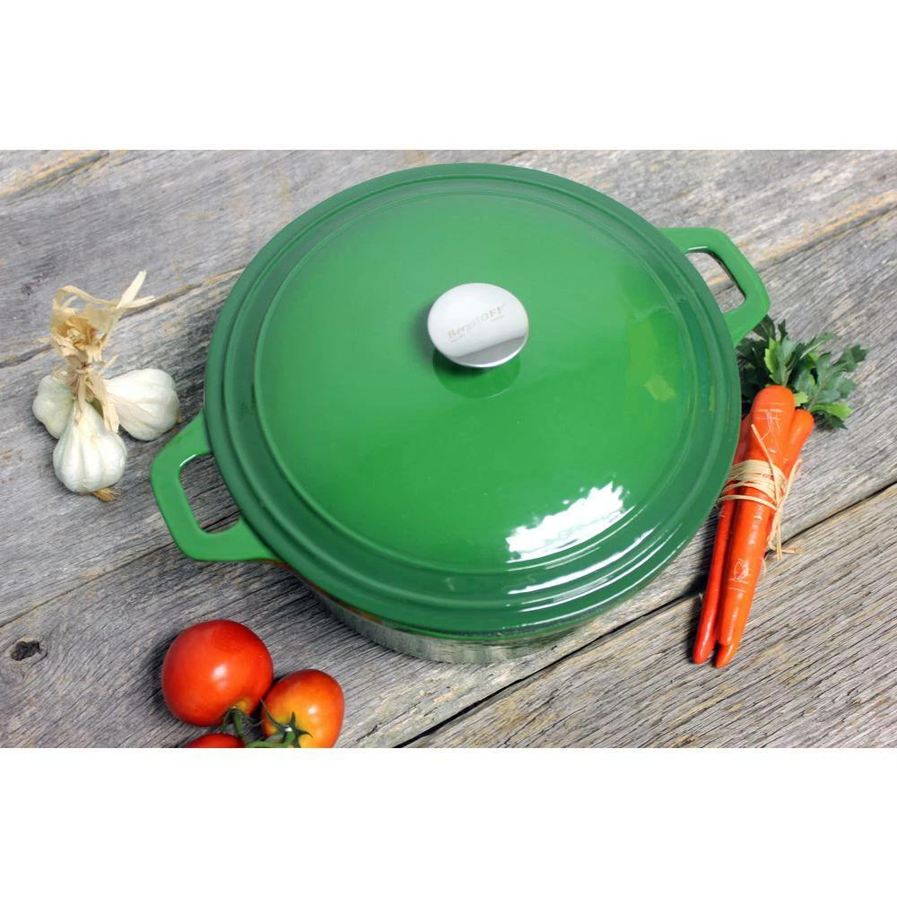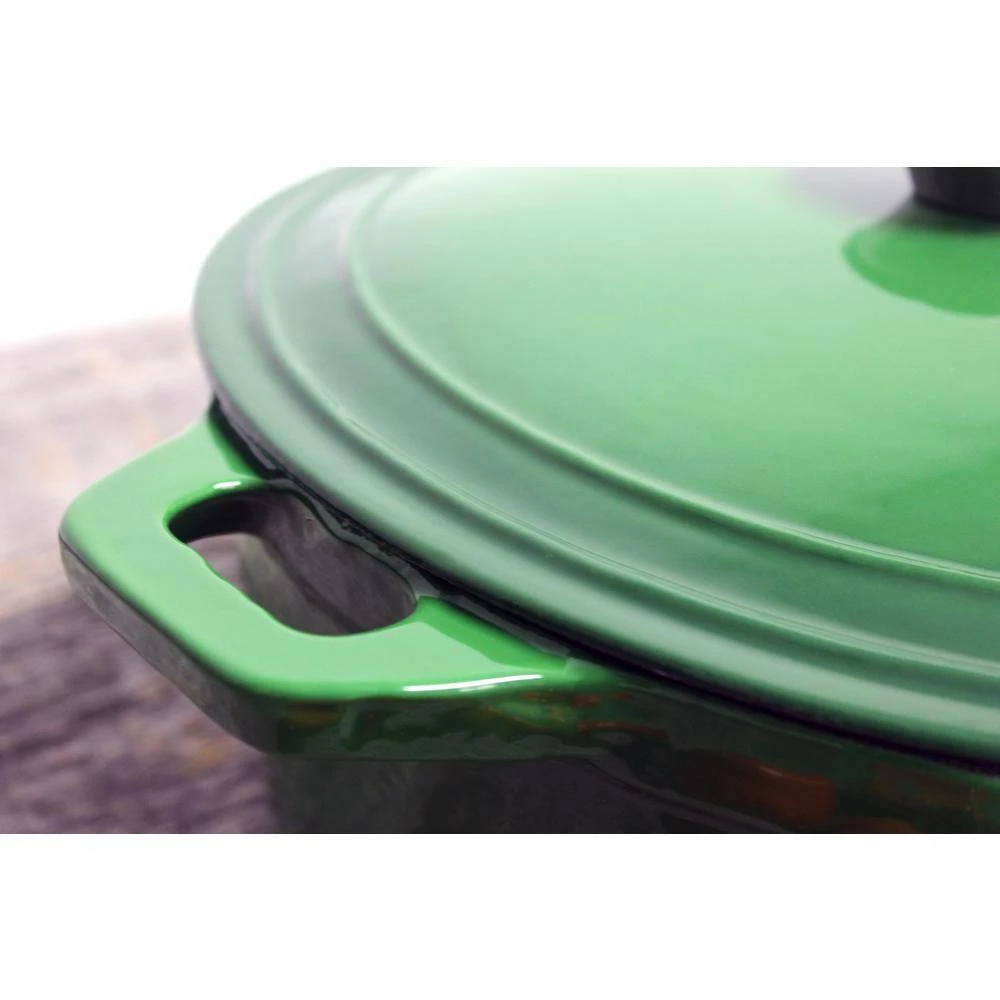 This Neo, cast iron, 7 Qt., green casserole dish is a perfect tool for the serious chef looking to expand their collection. Built to last, self-seasoning, and boasting superior, even heating, one use and you’ll wonder why you used anything else. Features an attractive, enameled exterior. Usable with any heat source, including induction, and easily cleaned with soap and water. Oven safe up to 400°F.
