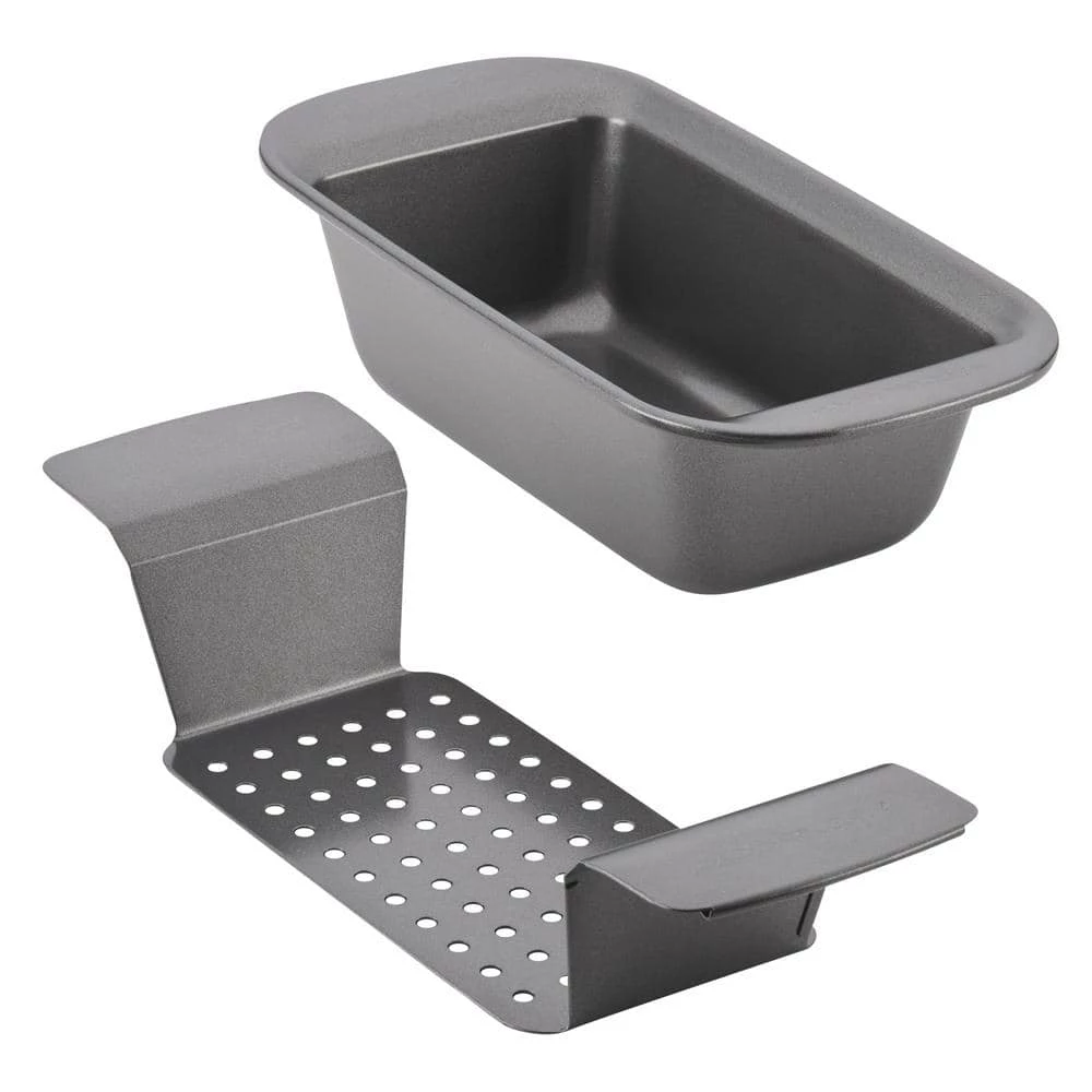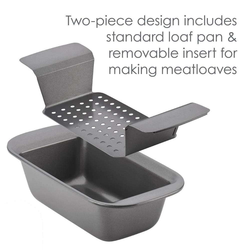 - TWO-PIECE NONSTICK LOAF PAN: Clever two-piece bakeware design includes a standard loaf pan and a removable insert for making meatloaves