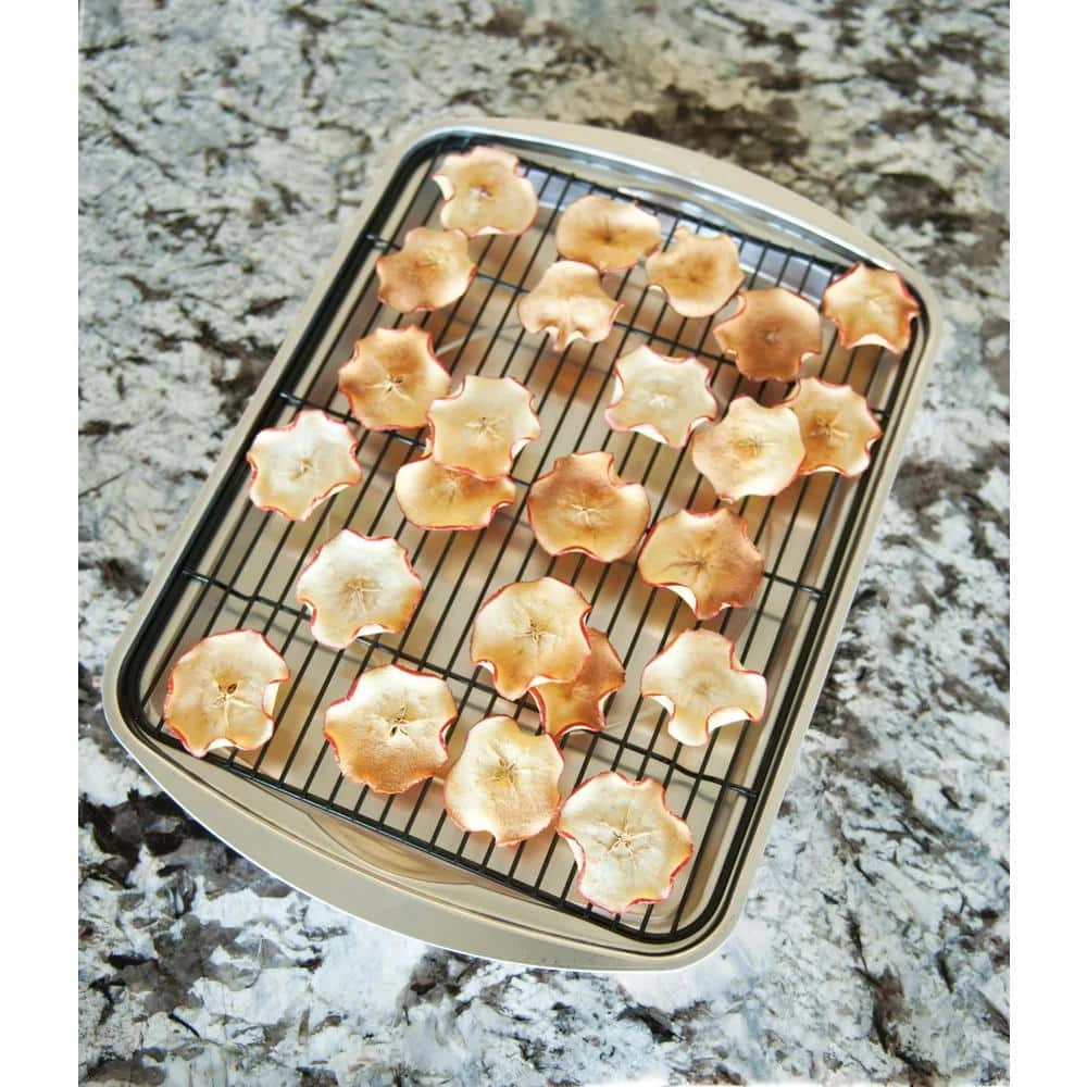 The best possible way for making oven-baked bacon. Grease drains away and hot air circulates underneath so there’s no need for turning. For flat, evenly cooked bacon without the mess. Great for making jerky, dried fruits, crisp fries or tots, and more.