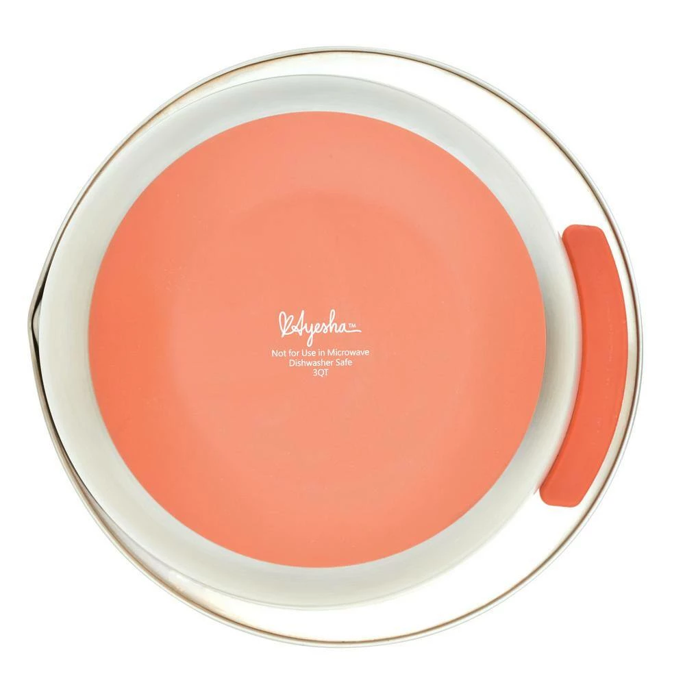 Mix up delicious batters, fresh salads, and zesty cooking marinades with this practical set of nesting stainless steel mixing bowls from Ayesha Curry. These made-to-last stainless steel mixing bowls nest conveniently together for-easy storage and feature a rubberized base, so they won’t slide around on the countertop when you’re beating eggs for a batch of Ayesha’s Prosciutto Egg Cups With Asparagus. Silicone accent grips (in Mustard Yellow, Redwood Red, and Anchor Blue) make these lightweight mixing bowls even easier to handle, and each of the 1.5 qt. , 3 qt. , and 5 qt. mixing bowls feature a convenient pouring spout for managing batters and sauces. Dishwasher safe for fast,-easy cleanup.