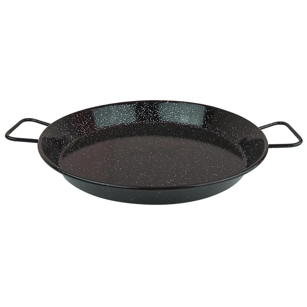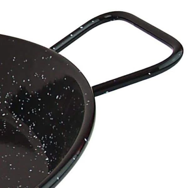 Welcome to Spain. Quality enamel coating makes this paella pan extremely durable and very easy to clean and non-porous properties of the enamel prevent the buildup of germs and bacteria. The wide, shallow shape of the pan ensures the rice cooks in a thin layer while the glass-like structure of enamel prevents rust and corrosion, eliminating the need of seasoning after use.
