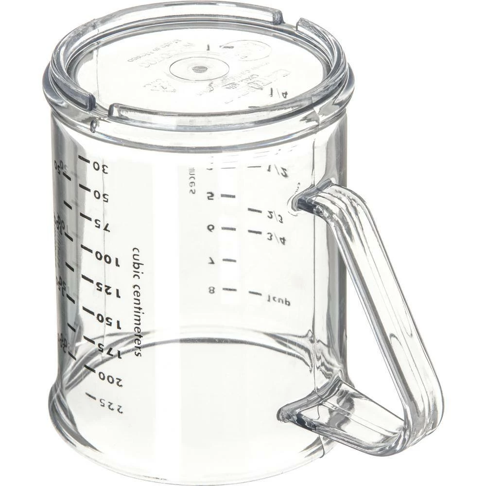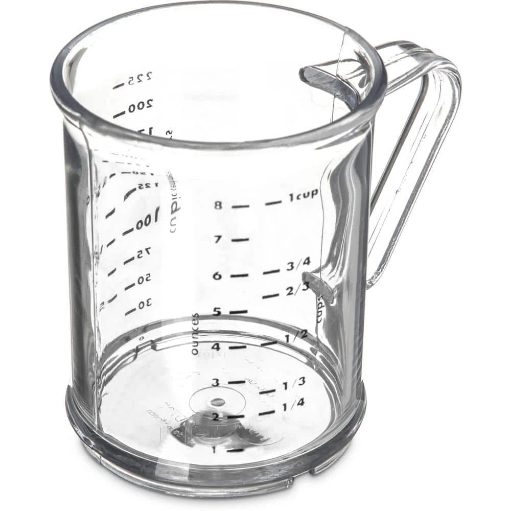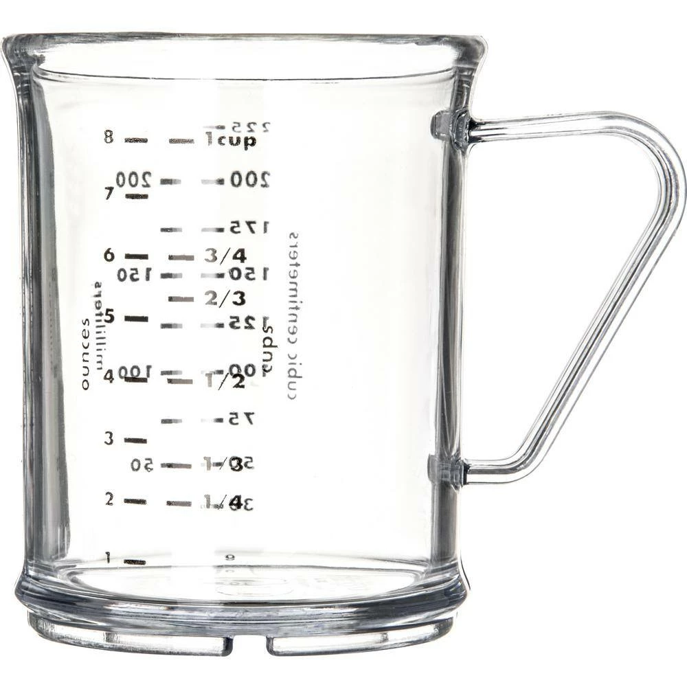 The clear measuring cup is a classic core item in your church, school or home kitchen. Designed specifically for measurement of liquid ingredients. A durable 1 cup capacity item available only in the case pack.