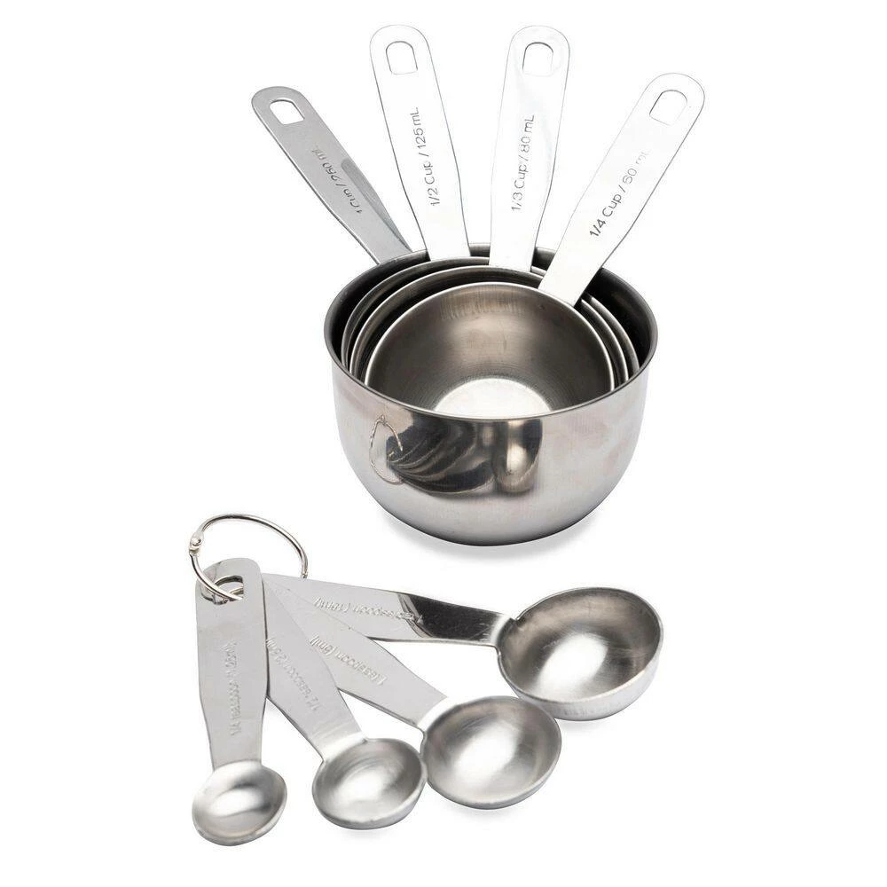 From breakfast to after-dinner desserts, you’ll get the right ingredients every time with the help of this 8-piece measuring cup and spoon set. These measuring cups are made of sleek stainless steel and nest together on an easy-to-open ring for space-saving storage. Suitable for chefs, bakers or anyone who likes cooking or baking.