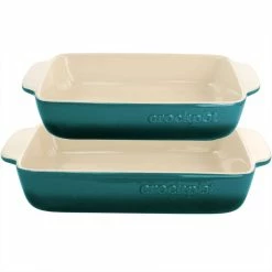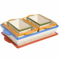 Anaya 2-Piece Rectangle Stoneware Bakeware Set with Hand Painted Designs by GIBSON ELITE
