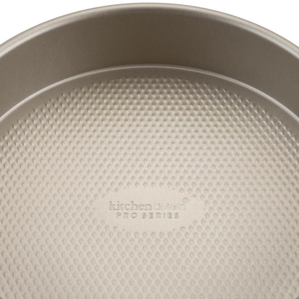 The Kitchen Details Pro Series 9.5″ Round Cake Pan is great for making the perfect cake. This pan is made of durable carbon steel for long lasting use. The textured diamond base of the pan conducts heat evenly for the best cooking results. The cake will cook golden and evenly in the oven. The nonstick surface makes for an easy release and is also easy to clean. This baking pan is oven safe up to 500 degrees Fahrenheit. This pan is also good for making other dishes such as cinnamon rolls and bread. This is the perfect multi-use round pan. This Kitchen Details Cake Pan is the best pan for your kitchen.