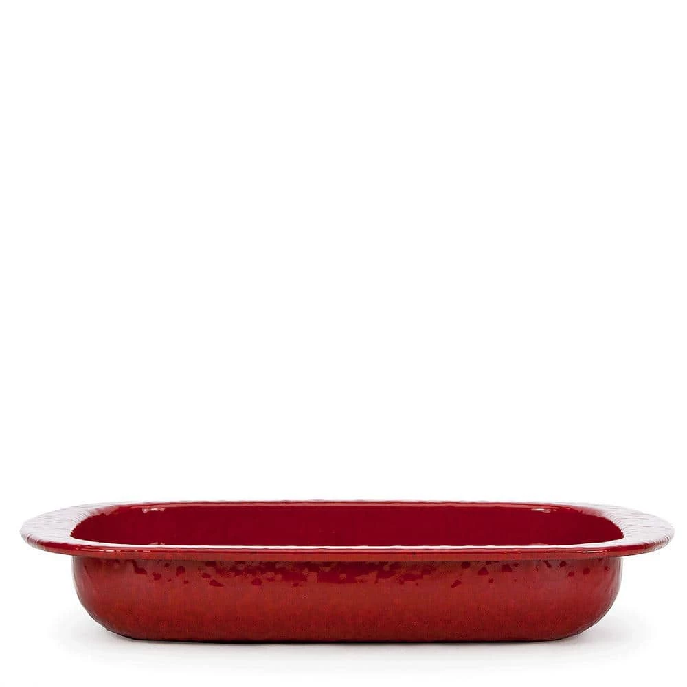 3 qt. baking pan, 12 in. x 9 in. x 2 in. This enamelware is made of carbon steel coated with a porcelain enamel and trimmed in stainless steel. There will be variations in the shading of colors and pattern formations which are the results of the hand-dipped process. The swirl design is a classic, retro staple for enamelware cookware and serveware. The contrast of colors creates a distinct look and brings a casual artistic flair to your table setting. Each piece is individually hand crafted and is as unique as you are. Skilled artisans hand dip the white background color, then use a brush to hand apply the secondary color swirls. This creates a unique piece and design each time. The elegant and inviting aesthetic draws the eyes into the many spattered patterns flowing throughout. Your piece will be one-of-a-kind and exclusive to you as you create your own distinctive style.
