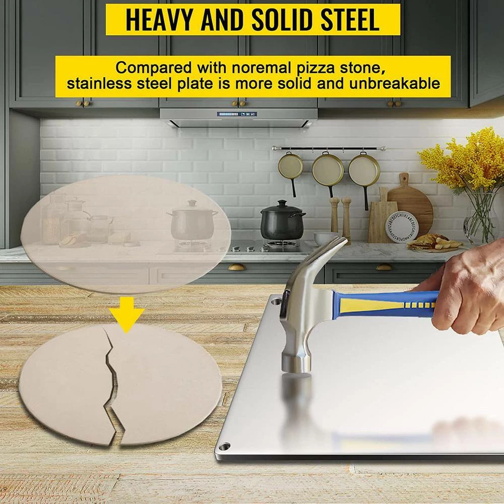 - Heavy Duty Pizza Steel: Durable Steel Pizza Stone, With A Smooth, Chemical-free Surface, Can Achieve Odorless, Smokeless Grilled Pizza Stone, Will Not Crack Or Deform So That You Can Use A Standard Household Oven To Make Delicious Brick Oven Quality Pizza