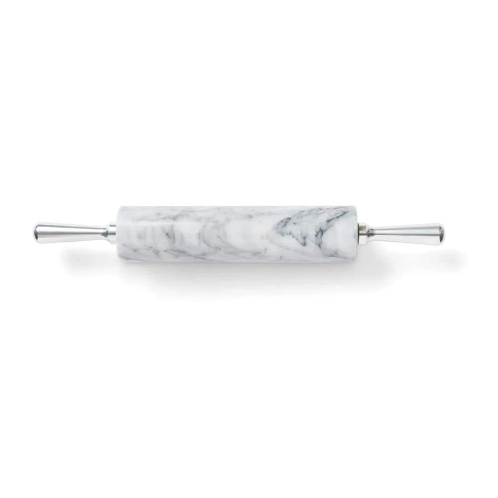 Enjoy baking cookies or rolling out your own pizza dough with the family? Then bring some ease to your baking with this White Marble Rolling Pin! The rolling pin is 17.5″ long, and 2.5″ diamter. Features aluminum handles and a marble base for rest. The marble helps keep the dough cool while rolling, and its natural non-stick properties keep dough from clinging. Even the toughest doughs are flattened easily and effortlessly. Let the smoothness and heft of this rolling pin do the hard work for you!